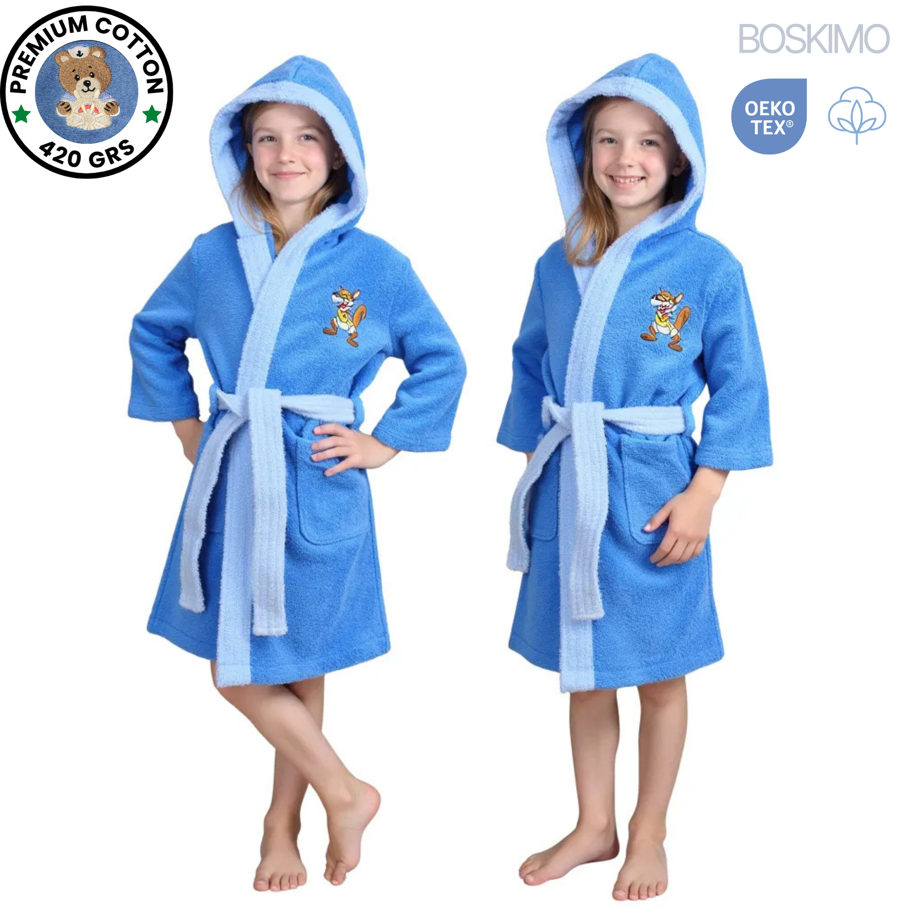 BOSKIMO - Albornoz Niños, Niñas, Adolescentes unisex - 100% Algodón - 2 Bolsillos, Cinturón, Capucha, Albornoces Felpa muy suave Niño niña.