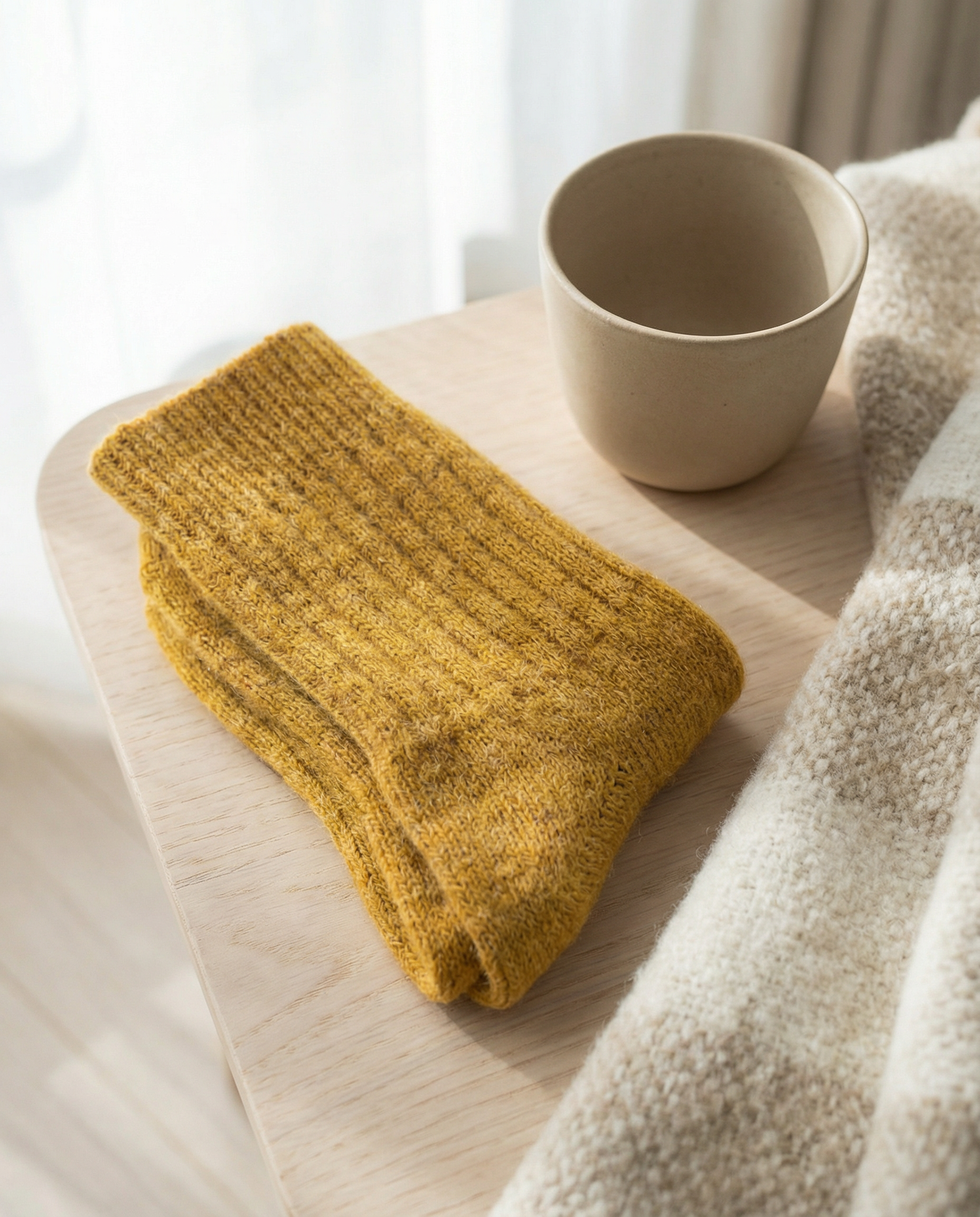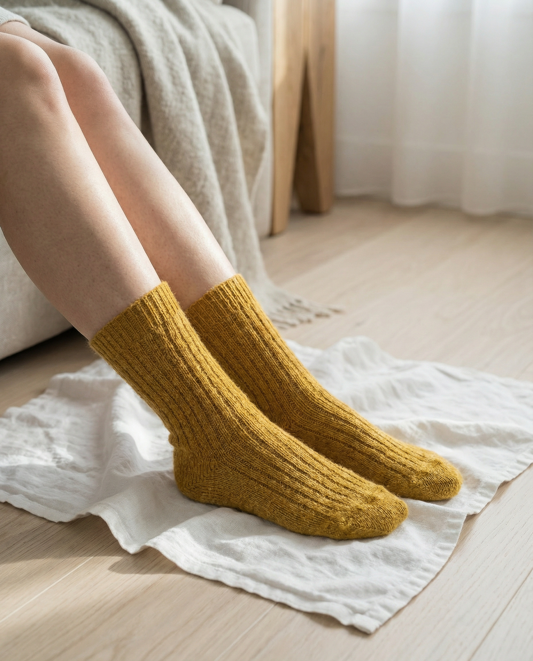 Calcetines BOSKIMO de Lana Merino y Cashmere – Mostaza | Calcetín Térmico Suave y Transpirable