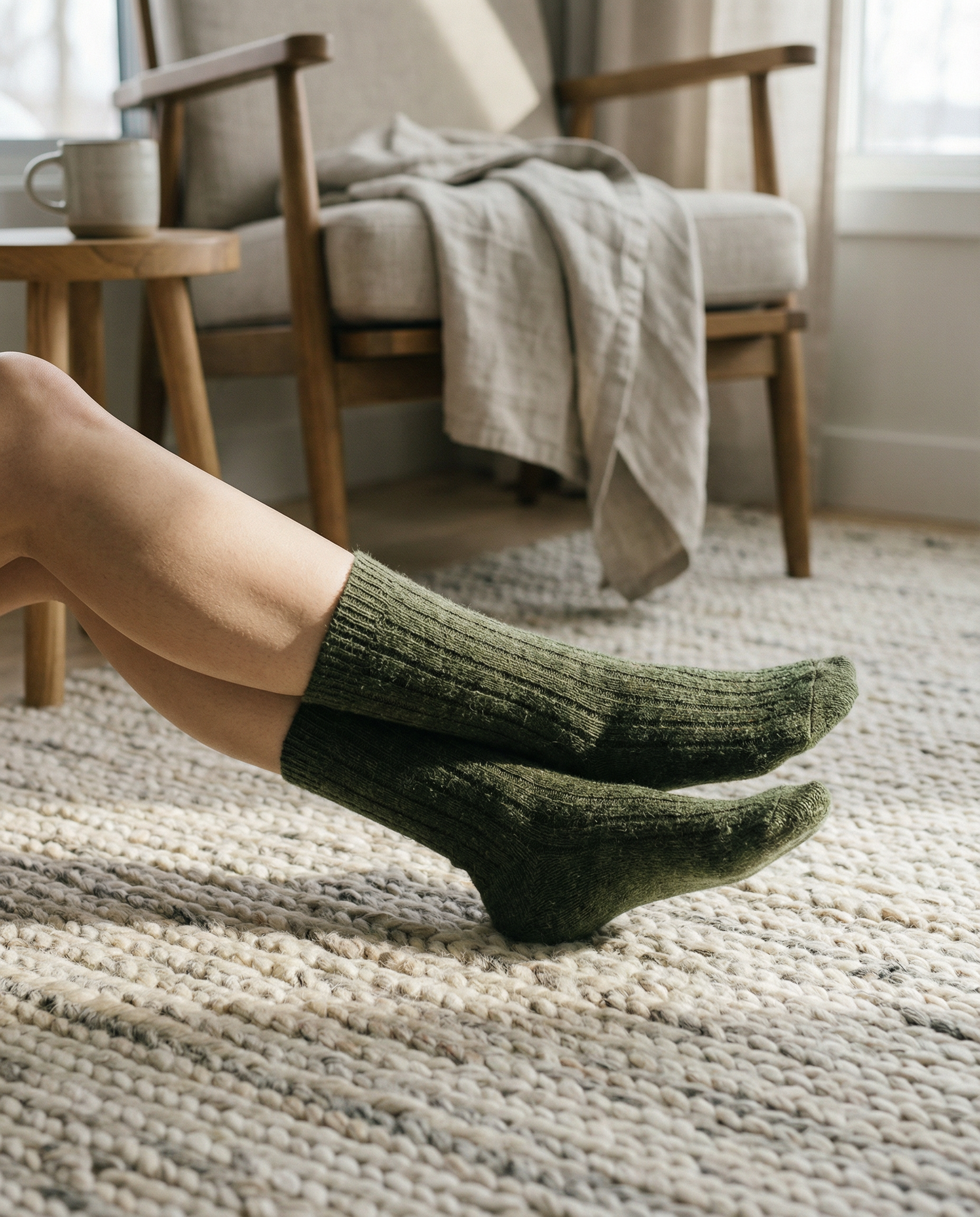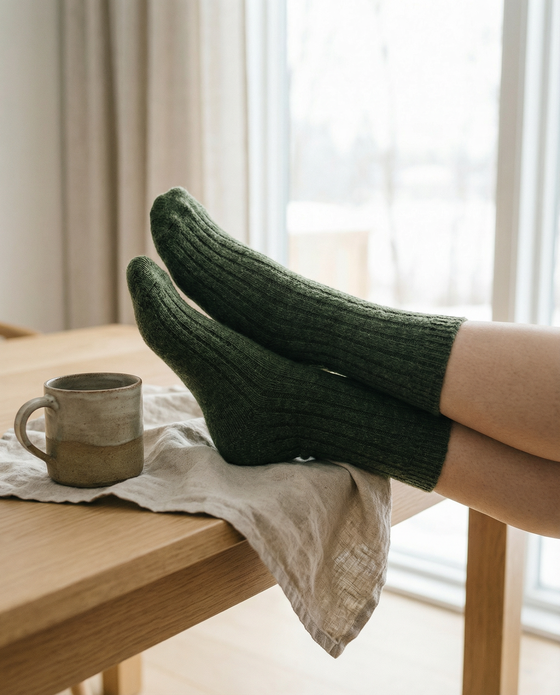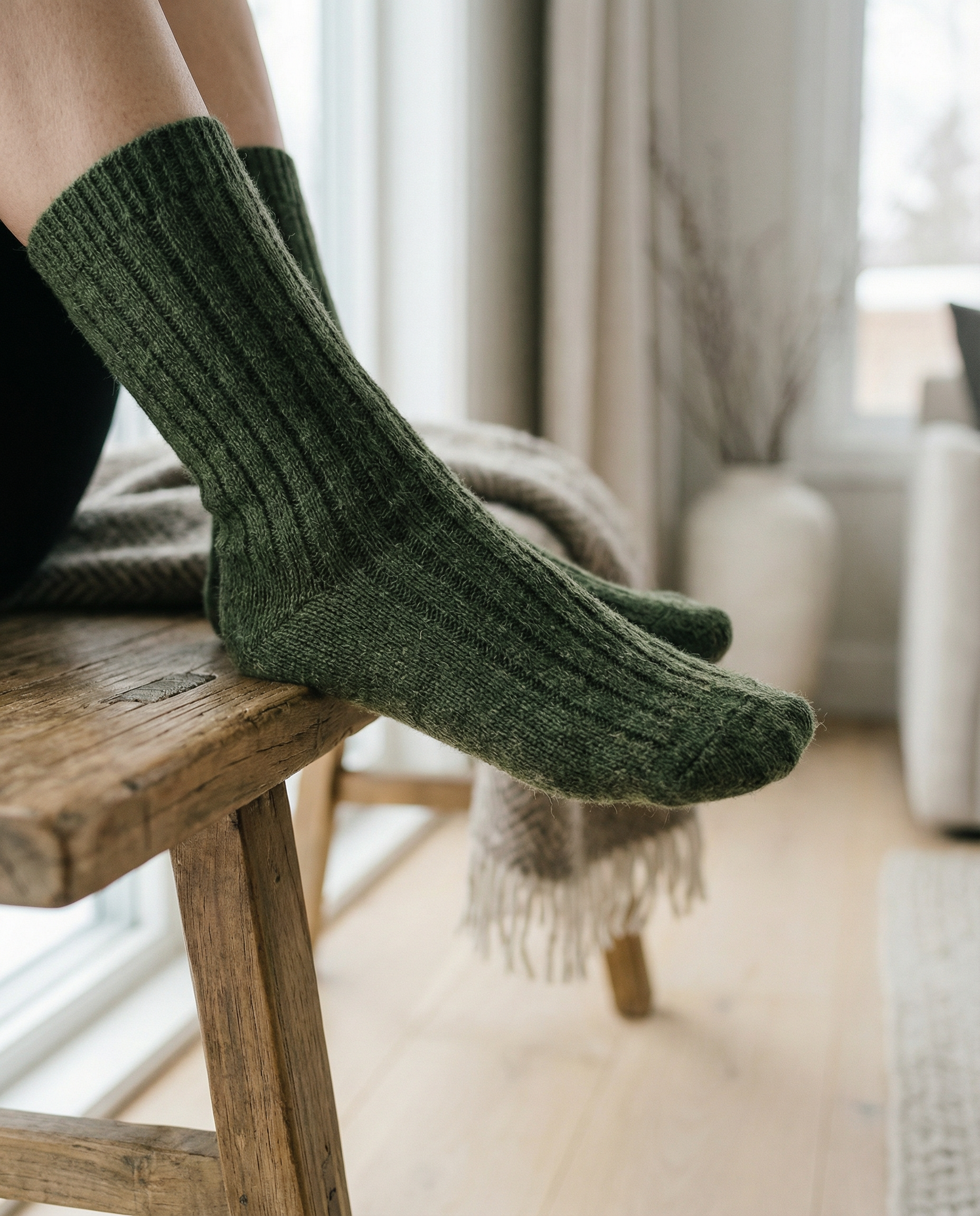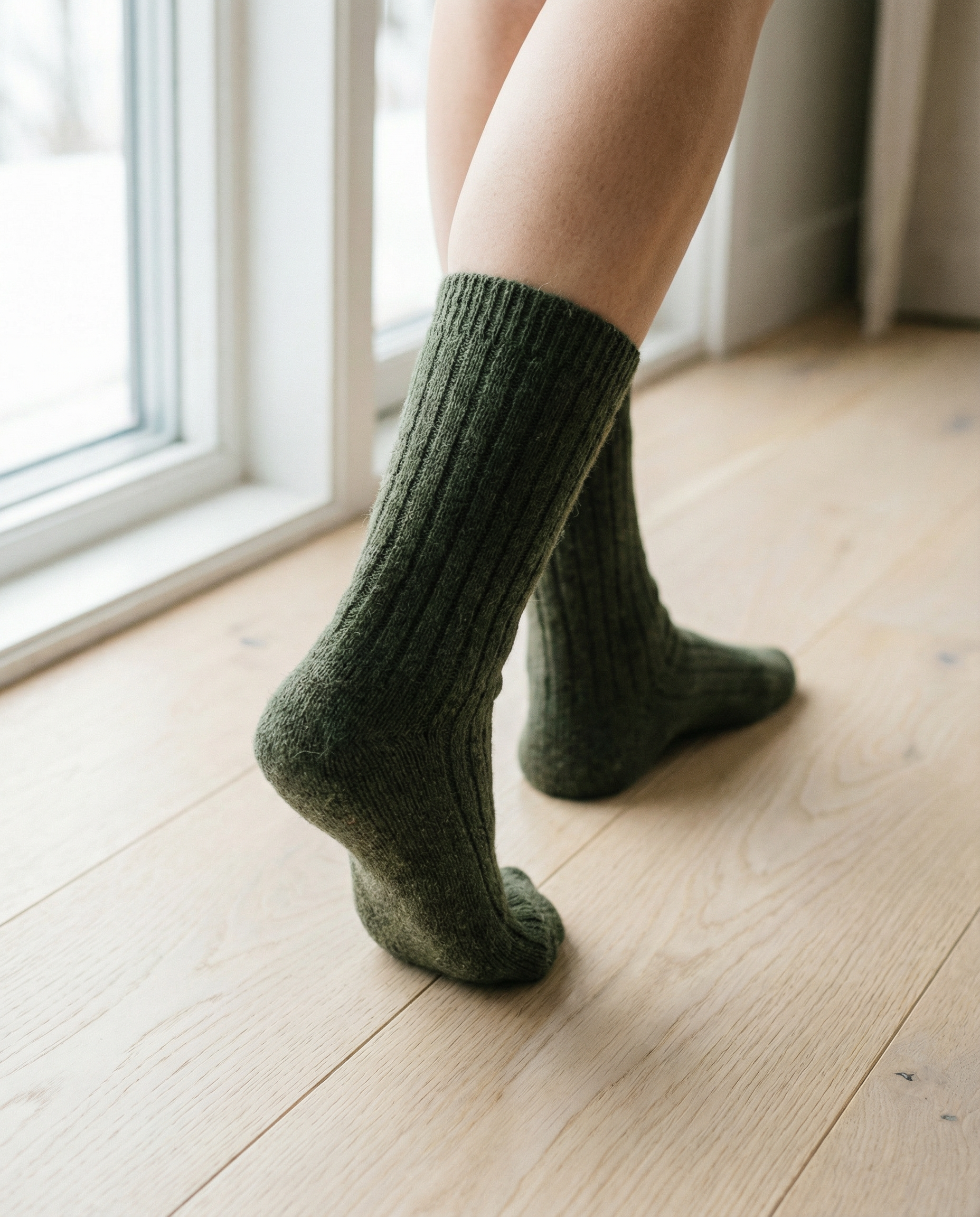 Calcetines BOSKIMO de Lana Merino y Cashmere – Verde | Calcetín Térmico Suave y Transpirable