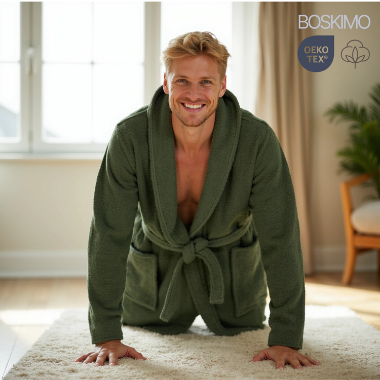 BOSKIMO Albornoz de Baño Unisex 100% Algodón OEKO-TEX – Bata para Hombre y Mujer – Rizo Americano 420 gsm – Suave y muy Absorbente
