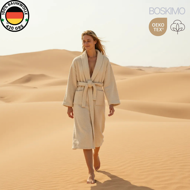 SUAVIDAD Y CONFORT PREMIUM: Confeccionado en algodón 100% de rizo americano de 420 g/m², ofrece una textura densa, mullida y muy agradable al tacto. Envuélvete en la calidez y suavidad de un tejido de alta calidad.