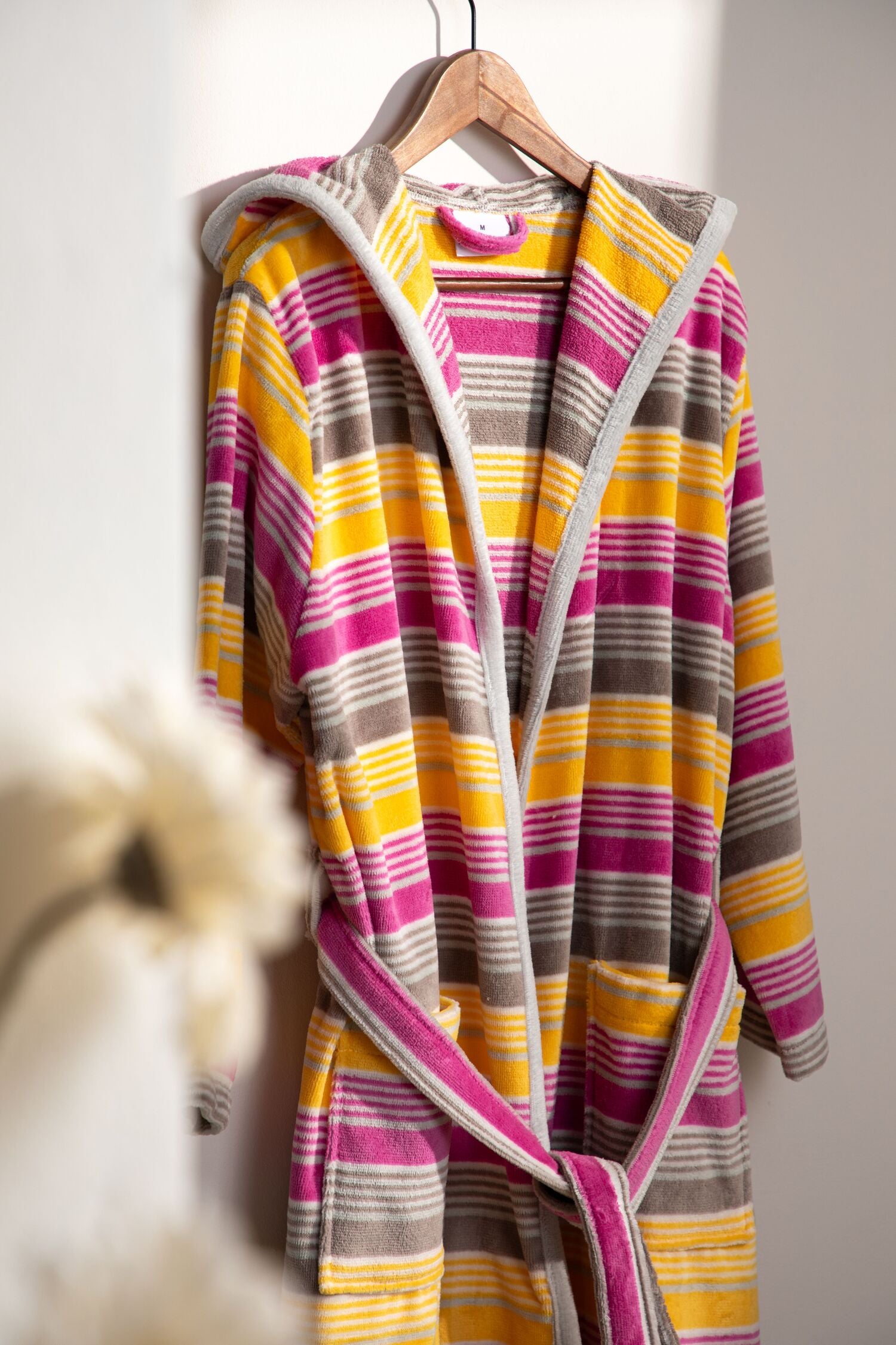 ROSANA - Albornoz Terciopelo 100% Algodón 420 gsm OEKO-TEX® - Doble uso: Bata de Casa y Baño. Diseño exclusivo y funcional: 2 Bolsillos, Cinturón y Capucha